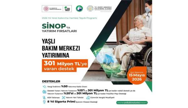 Sinop’ta, 2026 Yılı Yerel Kalkınma Hamlesi Teşvik Programı kapsamında yapılacak yaşlı bakım merkezi yatırımlarına 301 milyon TL’ye varan teşvik paketi açıklandı.