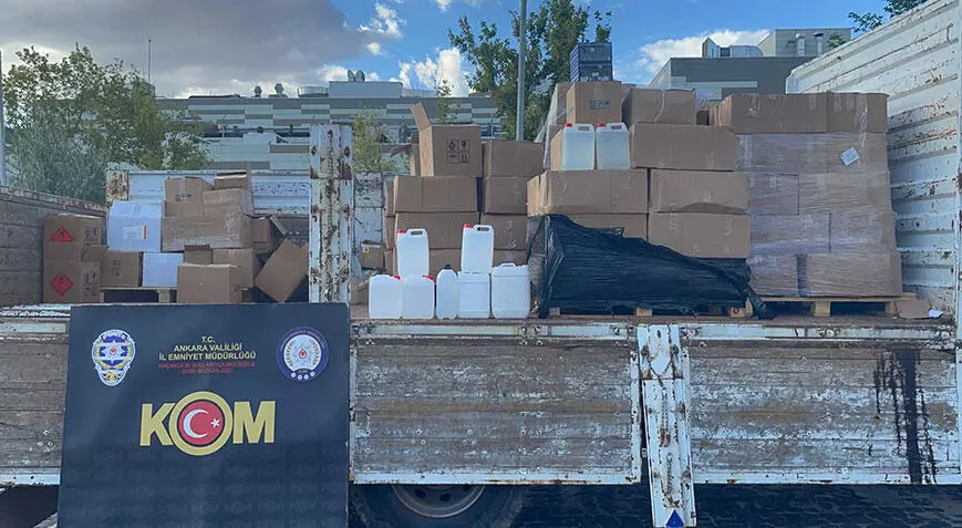 Ankara'da sahte içki üretimi yapılan bir depoya yönelik düzenlenen operasyonda, 1 kişi gözaltına alındı. Operasyon sonucunda, 5 ton etil alkolün piyasa değeri 1 milyon TL olarak belirlendi.
