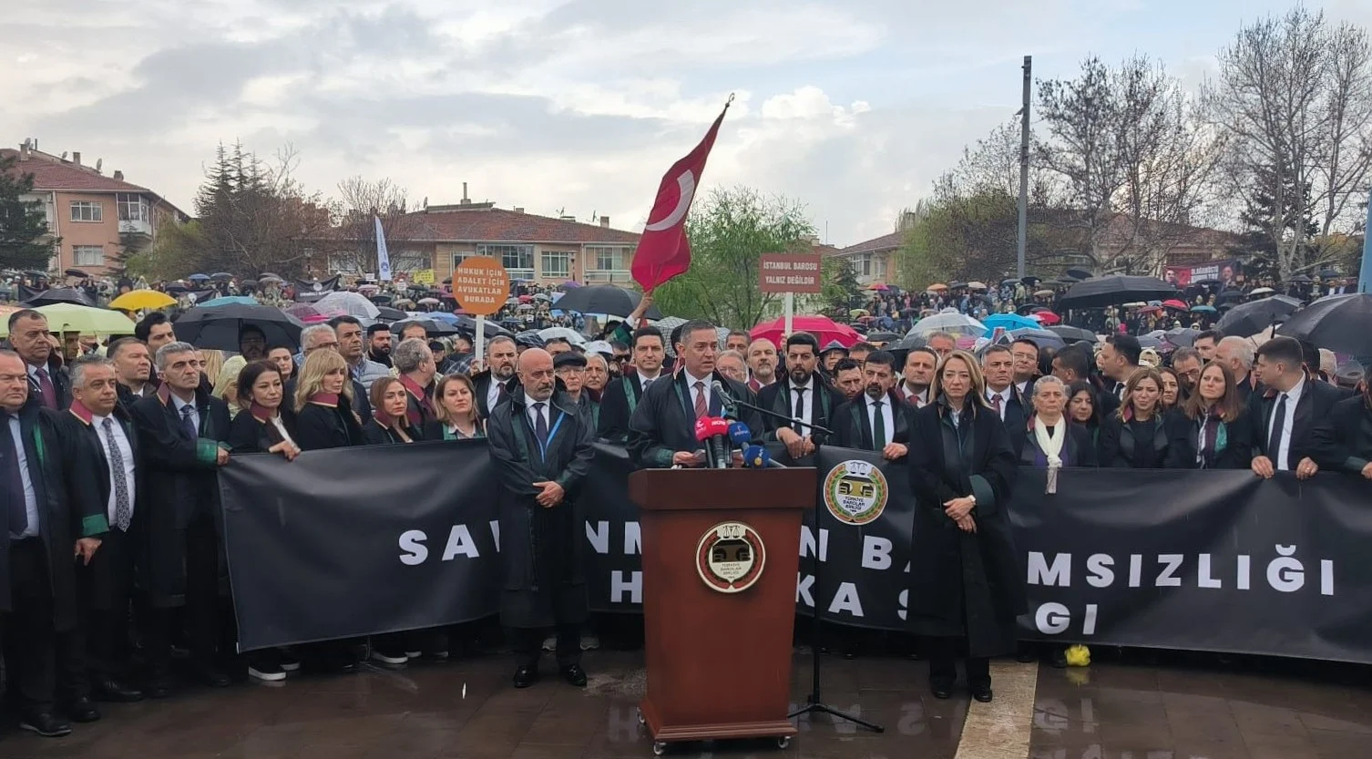 “Bugün 5 Nisan Avukatlar Günü. Aynı zamanda, yalnızca ülkemizin değil, dünyanın sayı bakımından en büyük barolarından biri olan İstanbul Barosu’nun da kuruluş yıl dönümü. Ancak ne yazık ki, 147 yıllık bu köklü kurumun seçilmiş yönetimi bugün hukukla değil, haksızlıkla mesnetsiz iddialarla, hukuka aykırı yargı kararlarıyla görevinden uzaklaştırılmak isteniyor. İstanbul Barosu, istibdada da işgal mahkemelerine de karşı duruş göstermiş, darbe dönemlerinde hukukun onurunu ayakta tutmuş, bu halkın yüz yıllık bağımsızlık ve demokrasi mücadelesinde adaletin taşıyıcısı olmuştur. Bugün, böylesine köklü bir meslek örgütüne yönelen müdahale, yalnızca bir kuruma değil, İstanbul Barosu üyesi on binlerce meslektaşımızın iradesine ve avukatlık mesleğinin özüne dönük bir tehdit niteliği taşımaktadır. Şunu açıkça ifade ediyoruz. Baroları susturulmak istenen bir ülkede, savunmanın sesi bastırılmak isteniyor demektir. Ama biz buradayız; meslek örgütümüze, mesleğimizin onuruna ve hukukun üstünlüğüne sahip çıkıyoruz. Ve biliyoruz. Bu ses, susturulamaz.