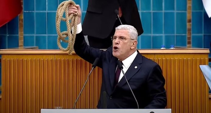 MHP Genel Başkanı Devlet Bahçeli, 2007 yılında Erzurum mitinginde AK Parti’ye yönelik, “Eğer Apo’yu asacak ipi bulamıyorsan, al sana ip” diyerek kürsüden atmıştı.