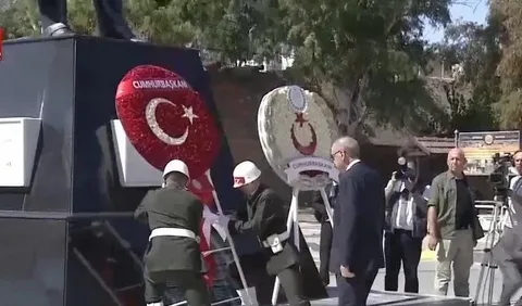 20 Temmuz Barış ve Özgürlük Bayramı törenleri için KKTC'nin başkenti Lefkoşa'ya giden Cumhurbaşkanı Recep Tayyip Erdoğan, KKTC Cumhurbaşkanı Ersin Tatar'la birlikte Atatürk Anıtı'nı ziyaret etti.
