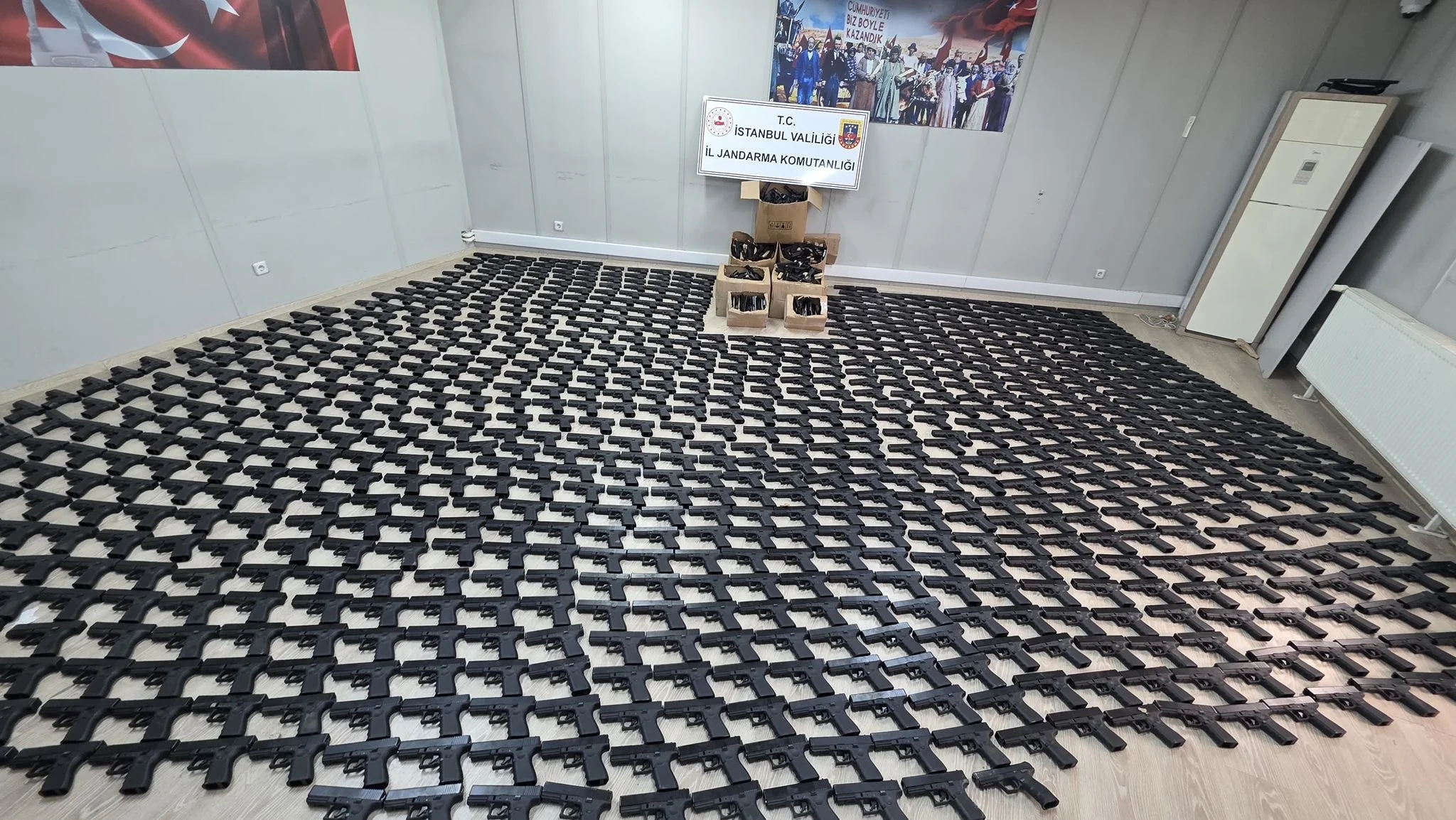 İstanbul İl Jandarma Komutanlığı ekiplerince yapılan operasyonda bin 21 adet ruhsatsız tabanca ile bin 264 adet tabanca yapımında kullanılan çeşitli parçalar ele geçirildi.