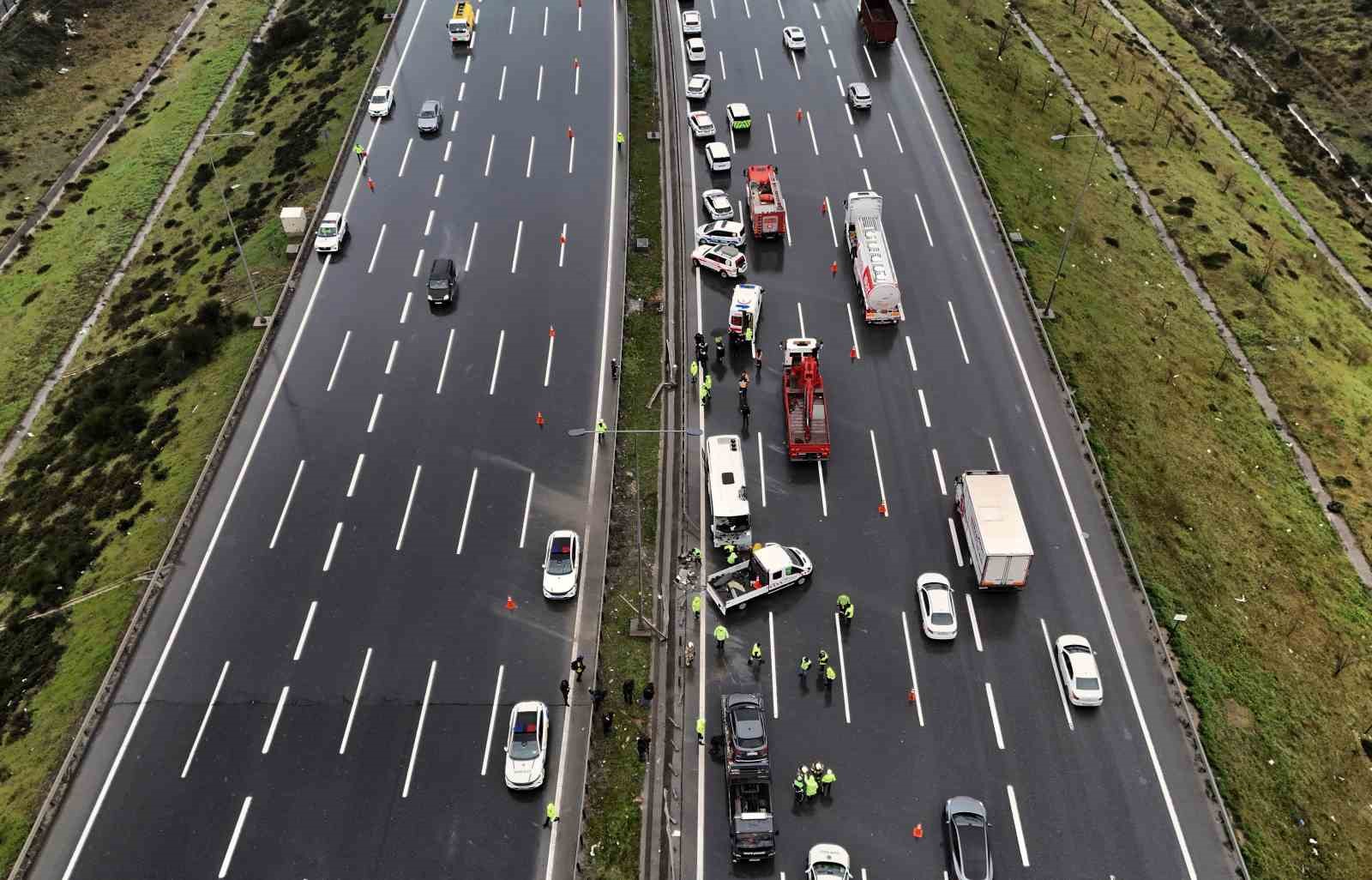 Kazanın ardından İstanbul Valiliği’nden yapılan açıklamada, saat 09.00 sıralarında Kuzey Marmara Otoyolu’nda meydana gelen kazada şehit olduğu bildirilen bir polis memurunun kalp masajıyla yeniden hayata döndürüldüğü belirtildi.
