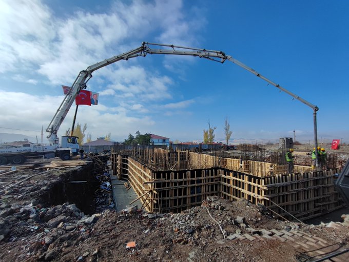 Gürcistan-Azerbaycan sınırında düşen Türk Silahlı Kuvvetlerine ait askeri kargo uçağında şehit olan askerler için dua okunan törende, protokolün düğmeye basmasıyla beton dökümüne başladı.