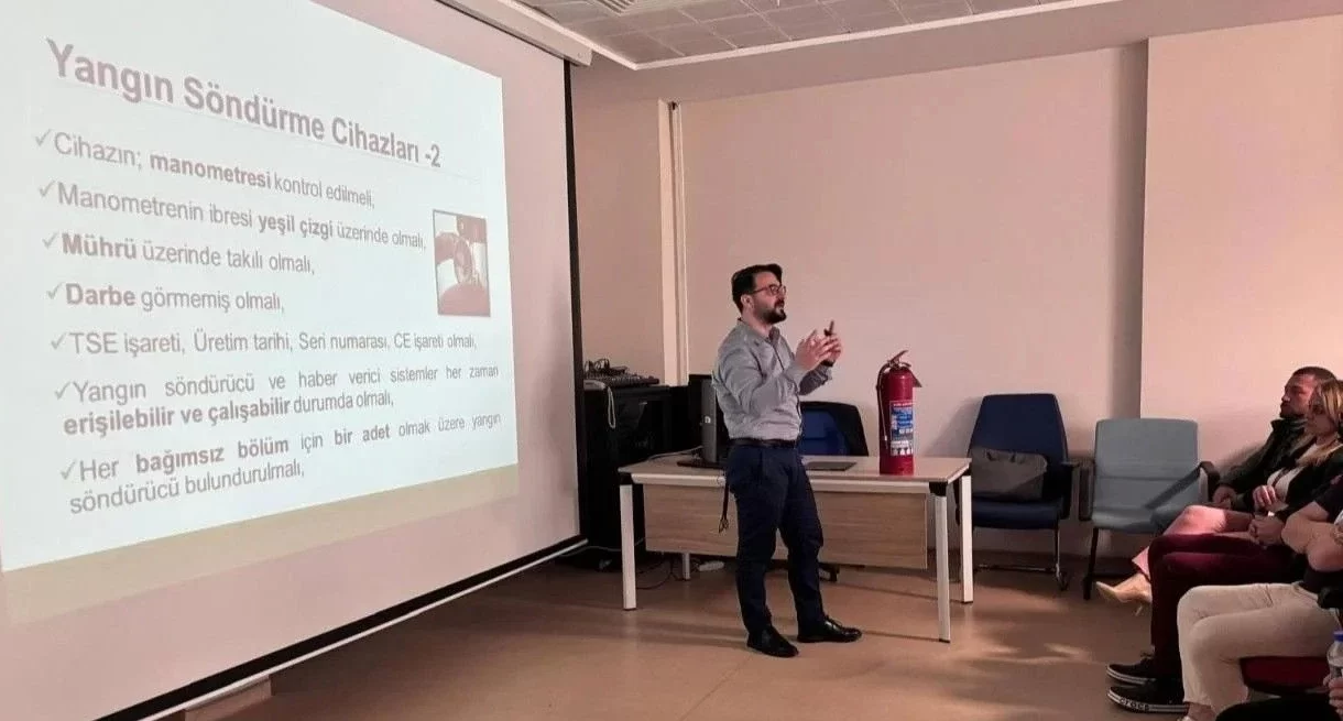 Sivil Savunma Amiri Hakan Akpınar tarafından verilen eğitimde, hastane gibi stratejik kurumlarda acil durum yönetiminin önemi vurgulandı. Eğitimde personellere, muhtemel bir yangın anında doğru müdahale teknikleri, binanın güvenli bir şekilde tahliyesi ve afet sonrası izlenecek stratejik adımlar hem teorik hem de pratik bilgilerle aktarıldı.