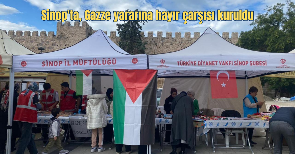 Sinop İl Müftülüğü ve Türkiye Diyanet Vakfı (TDV) Sinop Şubesi iş birliğiyle Gazze yararına Uğur Mumcu Meydanı’nda hayır çarşısı kuruldu.