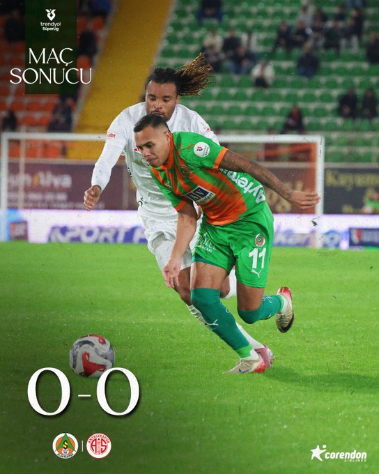 Alanyaspor, Trendyol Süper Lig'in 15. haftasında sahasında konuk ettiği Antalyaspor ile 0-0'lık skorla berabere kaldı.
