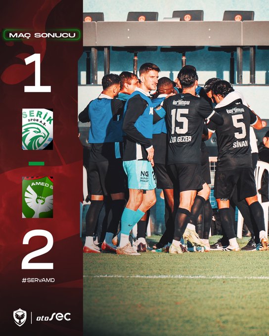 Amedspor, Trendyol 1. Lig’in 10. haftasında konuk olduğu Serik Spor‘u deplasmanda 2-1’lik skorla mağlup etti.