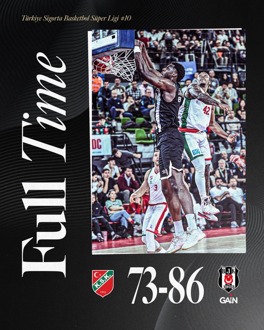 Beşiktaş GAİN, Türkiye Sigorta Basketbol Süper Ligi’nin 10. haftasında konuk olduğu Karşıyaka’yı deplasmanda 86-73 mağlup etti.