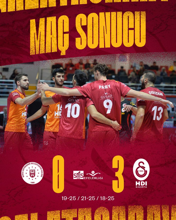 Galatasaray HDI Sigorta, Voleybol SMS Grup Efeler Ligi 8. haftasında deplasmanda Bursa Büyükşehir Belediyespor'u 3-0 mağlup etti.