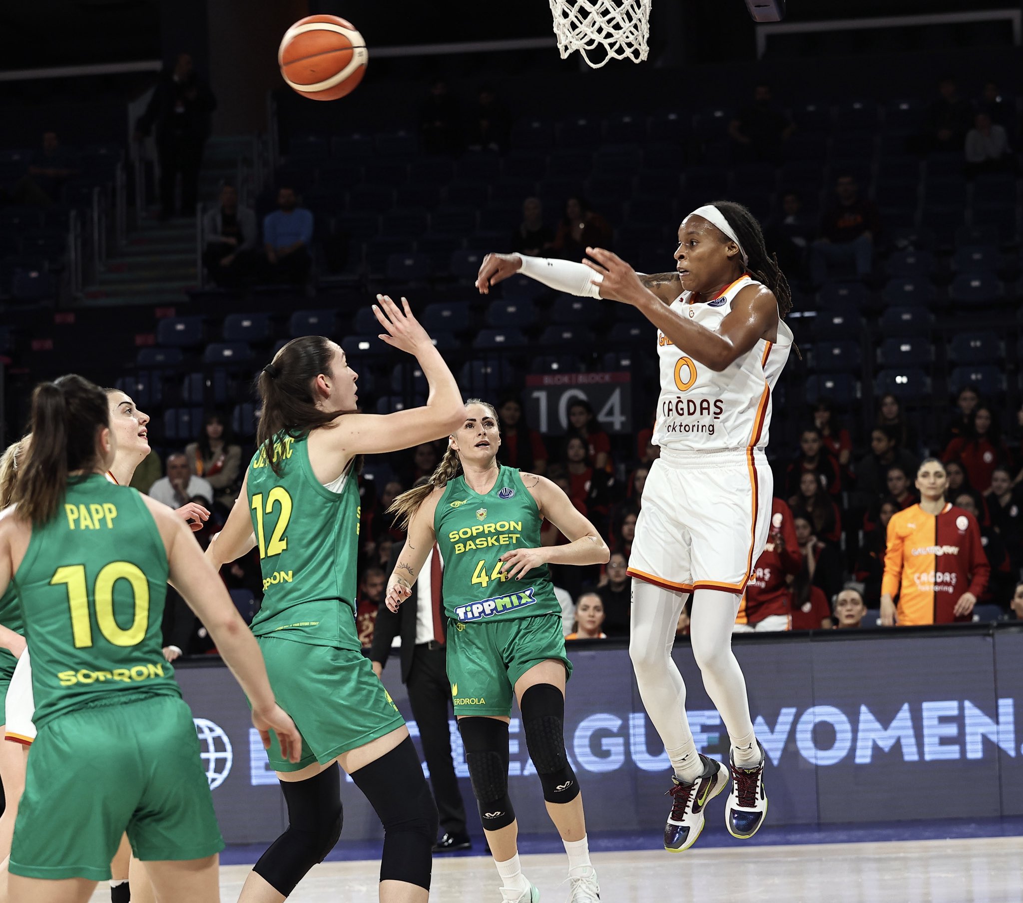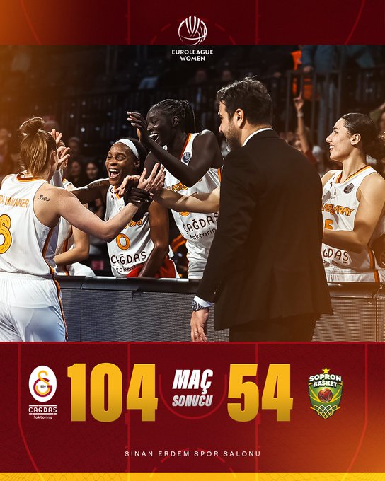 Galatasaray Çağdaş Faktoring, Euroleague Women B Grubu’nun 6. ve son haftasında evinde Sopron Basket’i 104-54 yenerek grubunu lider bitirdi.