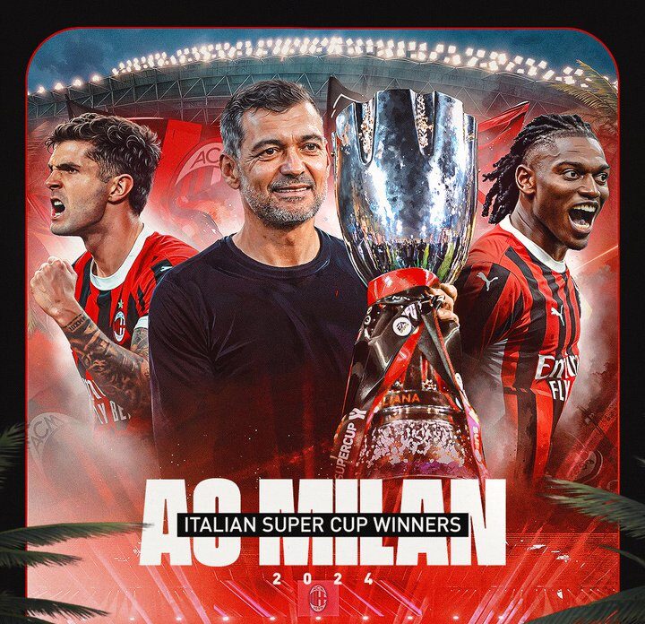 Milan, İtalya Süper Kupası final maçında 2-0 geriye düştüğü maçta Inter'i 3-2 mağlup ederek kupayı müzesine götürdü.