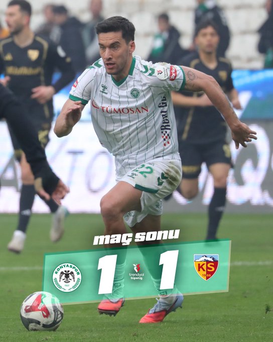 Konyaspor, Trendyol Süper Lig'in 17. haftasında sahasında konuk ettiği Kayserispor ile 1-1 berabere kaldı.
