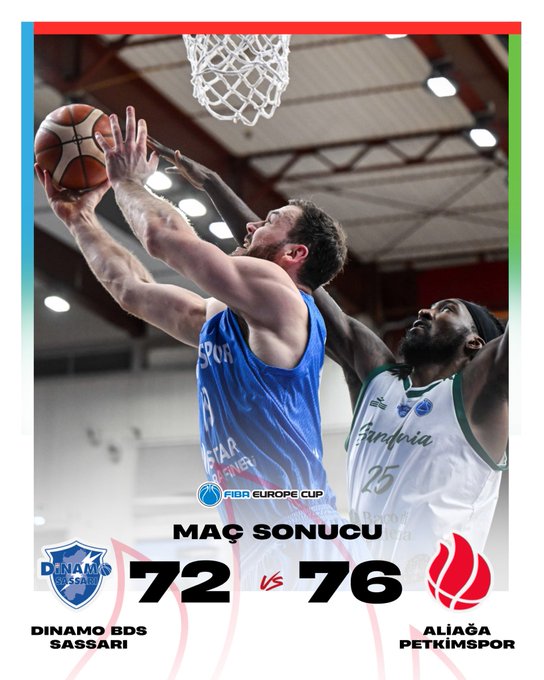 Aliağa Petkimspor, FIBA Europe Cup 2. Tur N Grubu ilk maçında konuk olduğu İtalyan ekibi Dinamo Sassari'yi deplasmanda 76-72 mağlup etti.