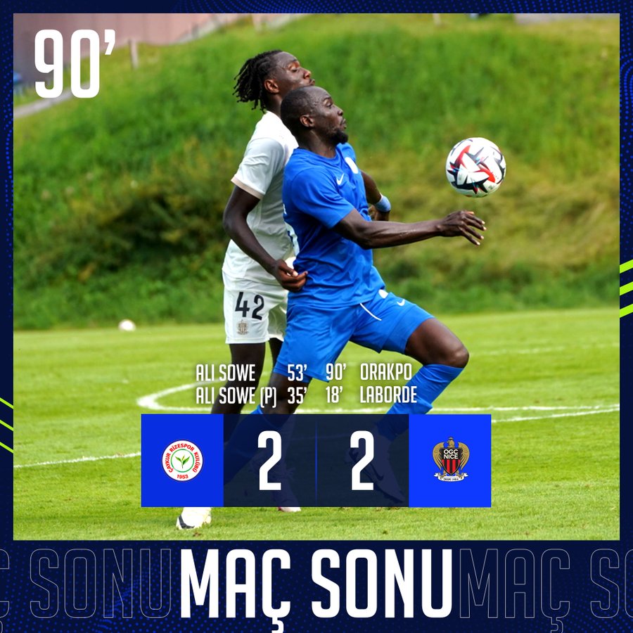 Rizespor’un gollerini 35 ve 53. dakikalarda Ali Sowe kaydetti. Nice’te fileleri 18. dakikada Laborde ile 90+3. dakikada Orakpo havalandırdı.