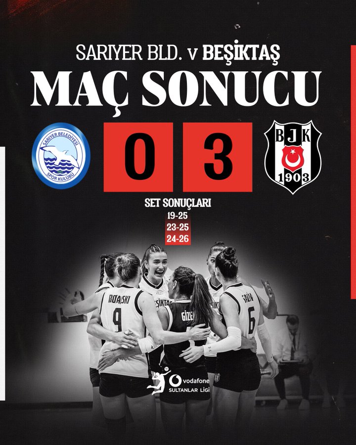 Beşiktaş, Voleybol Vodafone Sultanlar Ligi’nin 2. hafta maçında konuk olduğu Sarıyer Belediyespor’u deplasmanda 3-0 mağlup etti.